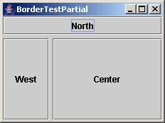 If nothing has been added to a region, the neighboring regions expand to fill that space. This window was created with 5 pixel gaps using only the NORTH, WEST, and CENTER regions. It was then resized, which added both vertical and horizontal space to the regions. |